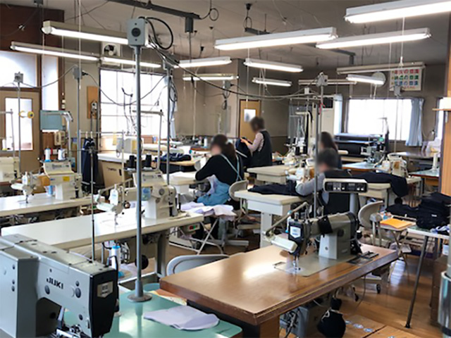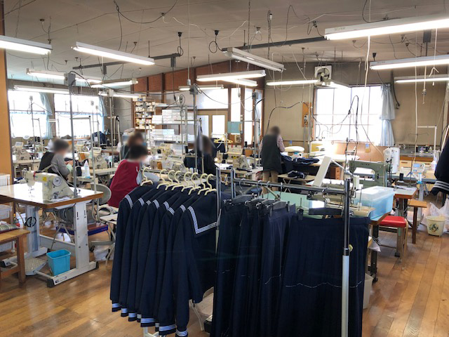 正直ヤは店舗敷地内に、縫製工場を持っています。制服専門の設備を備えているので、その品質・スピードには絶対の自信があります。